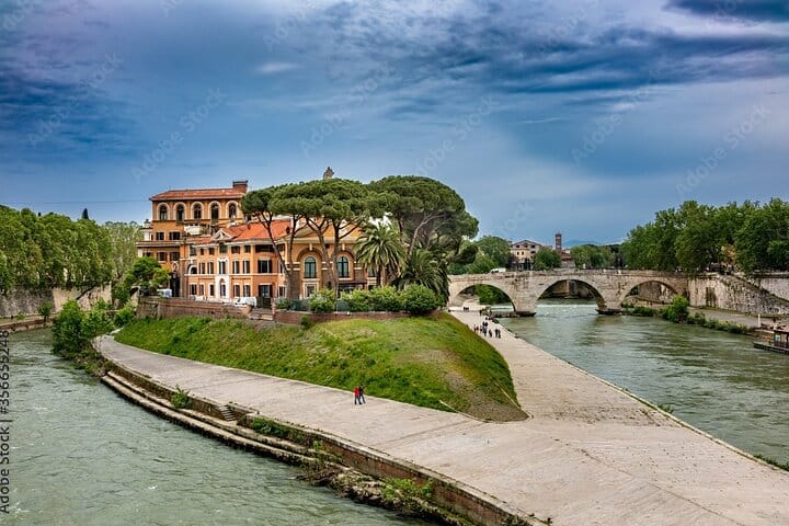 Begin your journey on the tranquil Tiber Island, home to legends of miraculous healing and a rich history. Cross the ancient Fabricio Bridge, which offers stunning views and holds stories of the city's past.